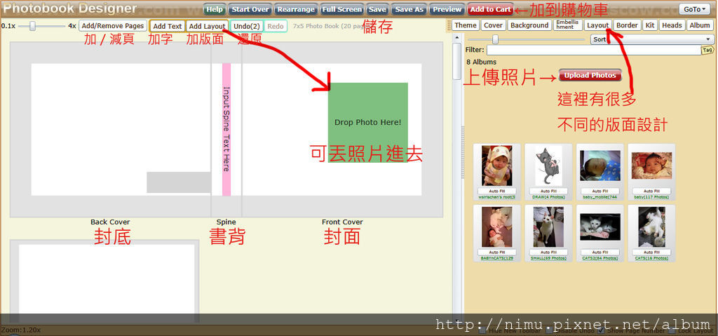 最好是先預覽(preview)一下相簿弄出來長怎樣...